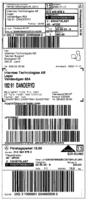 Transportetikett 105x251 mm utan kvittodel. DT Direkttermo. Etikettbanan matas in på baksidan skrivaren (fanfold / falsad). De flesta 4" / 104 mm printrar klarar detta. För PostNord, Schenker. Levereras på pall med 81 kartonger á 2000 fraktetiketter. Fraktkostnad enligt aktuella försäljningsvillkor.. Bobinstorlek:12;25;35;40;76mm